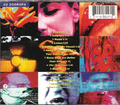 - Fans looking for vestiges of the old, JOSHUA TREE-era U2 are essentially left empty-handed, though the gorgeously spare and melancholy "Stay (Faraway, So Close!)" does touch on their earnest earlier sound. Zooropa truly gets going with the fascinatingly droning "Numb," which features the Edge on lead vocals and stands as the most adventurous single that the Irish quartet has ever released. From here the album hits a stride, careening through the giddy Euro-disco of "Lemon," the aforementioned "Stay (Faraway, So Close!)," the heavily percussive "Daddy's Gonna Pay for Your Crashed Car," and the funky, chiming "Some Days Are Better Than Others." Wrapping up the quirkiest outing in U2's discography is an appropriately strange, yet inspired song--"The Wanderer," where Kraftwerk-like synths and dreamy backing vocals support the unmistakable voice of the legendary Johnny Cash.